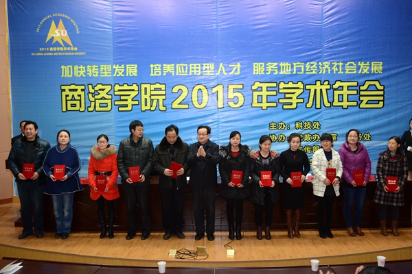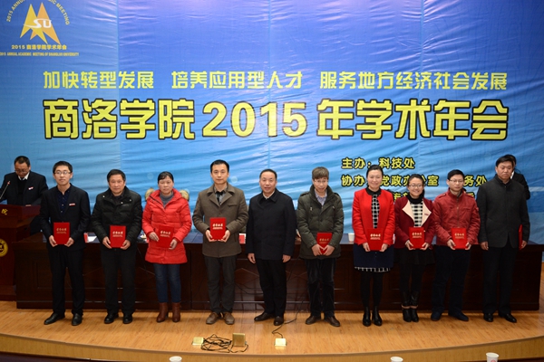 12月26日,由科技处承办、学校党政办公室等部门协办的我校2015年学术年会在图书馆报告厅隆重召开。大会以“加快转型发展培养应用型人才 服务地方经济社会发展”为主题。进化古生物学家、中科院院士、长江学者、西北大学教授舒德干,西北大学、西安石油大学教授、博士生导师、西安石油大学副校长李华,商洛市科协主席闫彩芹,校领导刘建林、范新会、王思怀、魏书堂、彭虎军、刘宝盈出席年会开幕式。大会举办了专题报告,分自然科学和人文科学两个会场进行了学术交流,对我校2015年度省教育厅科研获奖成果、学术年会优秀论文及组织单位进行了表彰奖励。