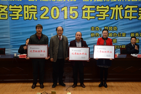大会对荣获2015年度陕西高校科学技术奖的《丹江流域水土保持生态修复模式研究》课题,《鲁迅小说的忏悔叙事》等49篇优秀论文,经济与管理学院等3个优秀组织单位进行了表彰奖励。校领导刘建林、范新会、王思怀、魏书堂、彭虎军分别为受表彰的集体和个人颁奖。副校长刘宝盈主持会议开幕式和闭幕式。