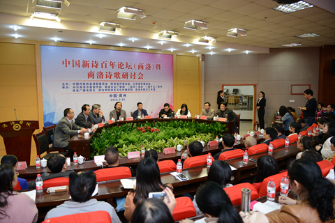 “中国新诗百年论坛”于2015年5月在无锡正式启动,计划用三年时间梳理中国新诗走过的百年历程。本次商洛论坛由中国作家协会诗歌委员会、陕西省作家协会、江苏省作家协会主办,我校和商洛市委宣传部、市文广新局、《延河》杂志、《扬子江》诗刊、商洛广播电视台、商洛市群众艺术馆联合承办,是该系列活动的第十场。论坛吸引了北京师范大学教授、诗歌评论家张清华、欧阳江河,北京大学博导、诗人、评论家臧棣,南京大学中国现代文学研究中心何同彬博士,陕西省作家协会副主席、《延河》杂志执行主编阎安,西北师范大学教授张晓琴,北京师范大学教授、评论家谭五昌,《扬子江诗刊》执行副主编胡弦等一批国内知名诗人、学者和评论家。