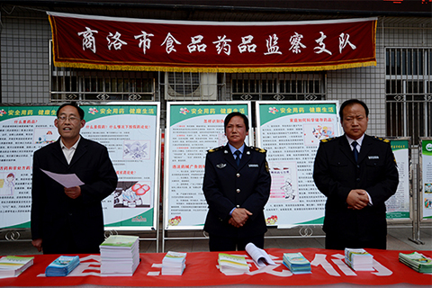 继商洛市第二十四届“科技之春”宣传月活动在我校举办“青年创新创业”报告之后,4月7日,商洛市食品药品监察支队走进我校,开展“科技之春宣传月食品安全进校园”活动,为我校学生宣传关于食品药品安全的相关知识。市食品药品监督管理局副局长王超锋、监察支队长赵宏侠出席并主持本次活动。食品药品监察支队全体成员参与宣传活动。