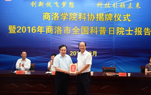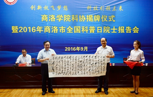 仪式上,刘建林、樊代明、宋奇志、闫彩芹共同为“商洛学院科学技术协会”揭牌。