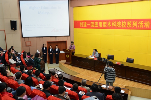 10月22日上午,马来西亚吉隆坡建设大学校长克里斯汀来我校为师生作题为《马来西亚高等教育概况及研究》的学术报告。各二级学院负责人、师生代表及吉隆坡建设大学来我校交流学生参加报告会。报告会由副校长刘宝盈主持。