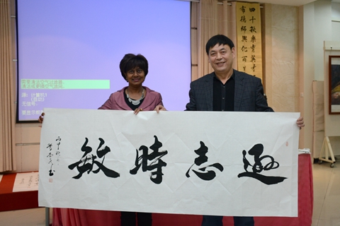 报告会结束后,刘宝盈陪同克里斯汀参观了我校特色展厅。