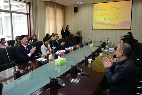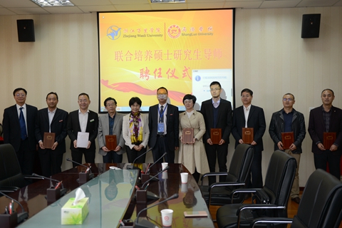 10月23日下午,我校与浙江万里学院举办了“联合培养研究生”硕士生导师聘任仪式。我校王新军等5位教师受聘为浙江万里学院硕士研究生导师。来自陕西森弗天然品有限公司、陕西天士力植物药业有限公司的王军等5位专家同时受聘为浙江万里学院校外硕士研究生导师。副校长刘宝盈、浙江万里学院副校长钱国英出席聘任仪式。科技处处长李继高主持聘任仪式。